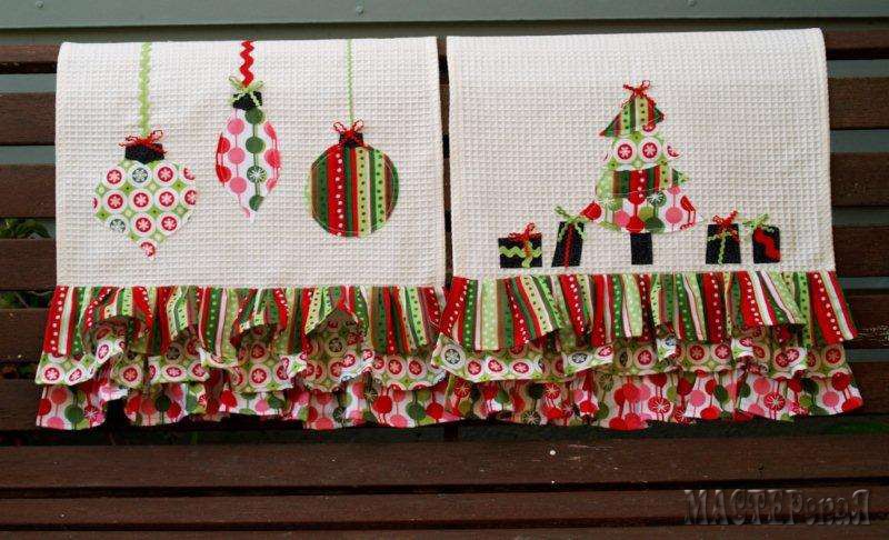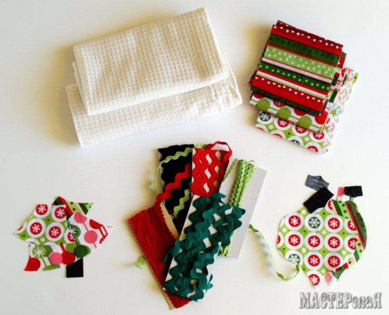 Согласитесь, что белые вафельные полотенца совсем не красиво смотрятся. И уж, конечно, не подойдут в качестве новогоднего подарка. Но! Их можно украсить новогодней аппликацией из х\б ткани и они приобретут праздничный вид. Такое полотенчико уже не стыдно будет и подарить.