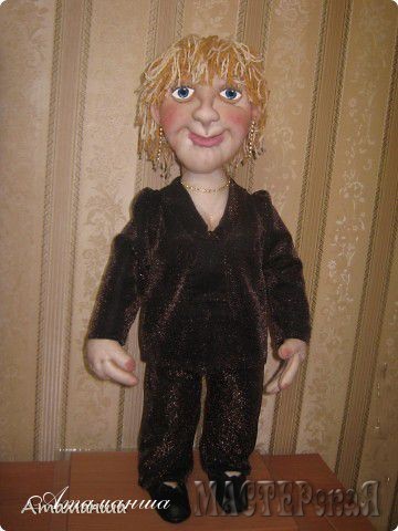 Ну понравилась ей кукла, очень. Тем более, что схожесть лица имеется. Тогда я ещё не имела волос для кукол и шила с нитками. Но все равно, веселенькая получилась дамочкаю