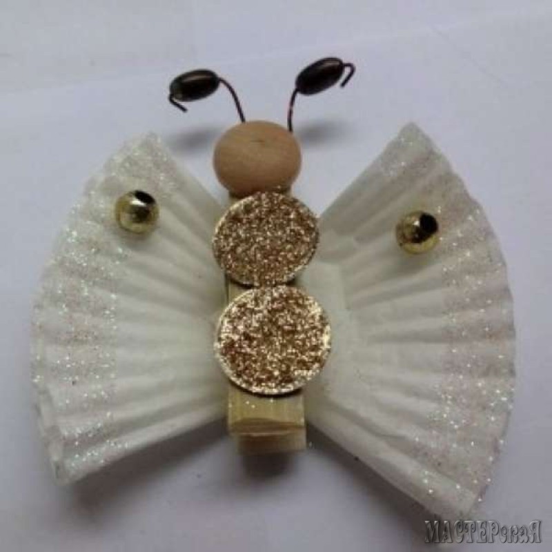 Бабочки из деревянных прищепок и фильтров для кофемашин. МК