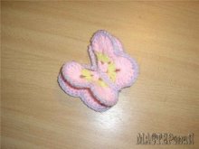 Бабочки можно сделать различными величине и окрасу. Бабочка получится более объемной, если ее крылья связать одним цветом, а затем вышить их другим.