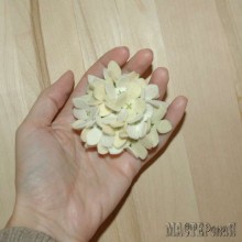 Пришиваем цветочки гортензии к одному из вырезанных кругов (к тому что без листочков) . При желании можно добавить к цветочной композиции бисер или бусинки.