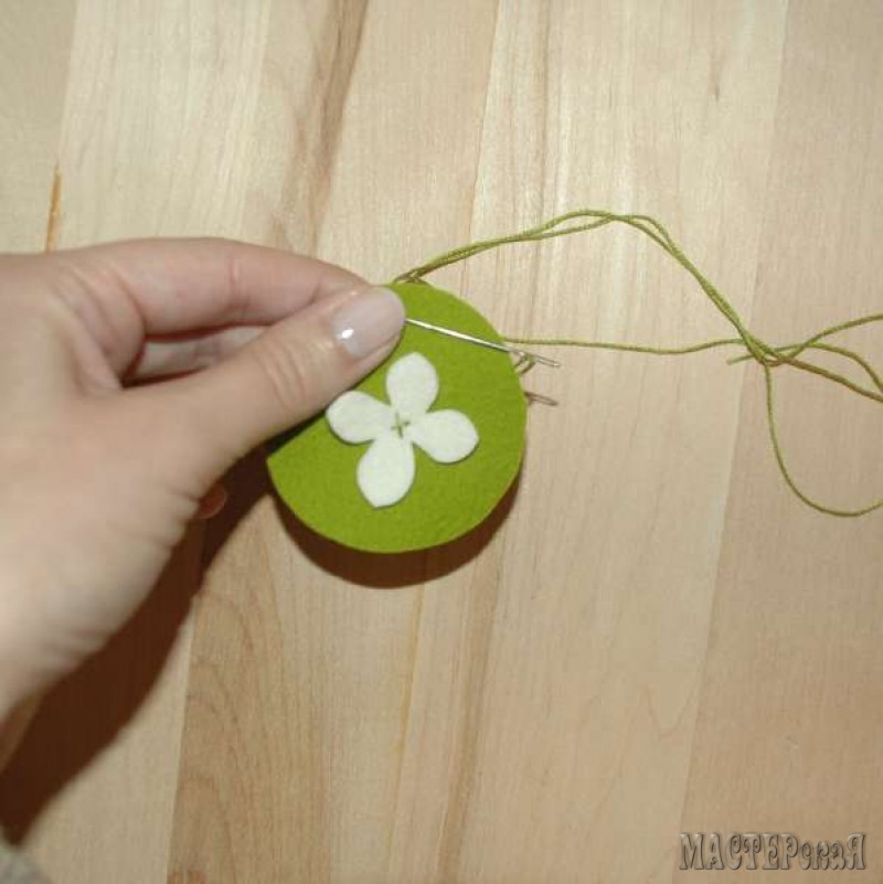 Дополнительно вырезаем из фетра два листочка. Вот что должно получиться