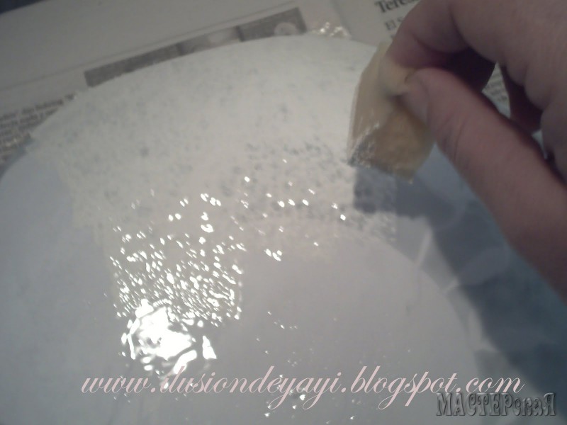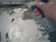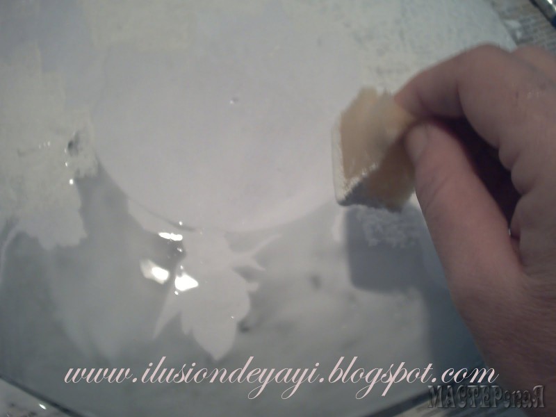 Теперь берем губку и начинаем чпокать по клею акриловой белой краской. Старайтесь пройти все участки