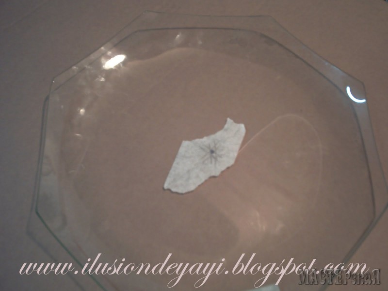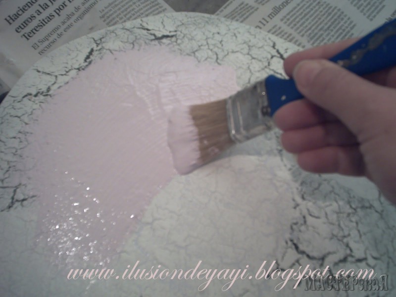 Красим полностью тарелку. Теперь с другой стороны будут видны розовые трещенки)))