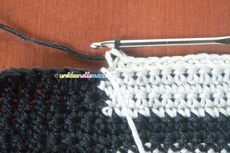 Для такого стильного чехла понадобится х\б пряжа черного, белого и серого цветов. Крючок - 2,5 мм. Работа начинается с цепочки из воздушных петель.Её длина - это длина вашего планшета. Сначала вяжем заднюю часть чехла полностью черной нитью столбиками без накида. Когда свяжем нужную нам по размеру деталь, то, не отрывая вязания, свяжем крышку (внизу на фотографии понятно как её вязать). Затем вяжем лицевую сторону, вывязывая клавиши белой нитью. Чтобы белый цвет не сливался, оттеняем клавиши серой нитью. Вяжем по схеме так же столбиками без накида. Крышку чехла вяжем отдельно. По-моему, по прилагающимся схемам всё понятно.