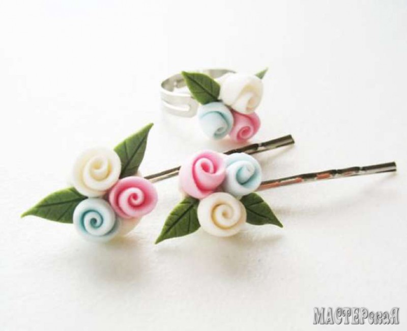 Теперь смотрим на предлагаемые варианты лепки розочек (еще их можно посмотреть ЗДЕСЬ), определяемся с цветовой гаммой и приступаем к лепке. Готовые розочки запекаем согласно инструкции на упаковке полимерной глины, из которой мы лепили. Приблизительно 30 минут в зависимости от толщины изделия при температуре 120-130 градусов.