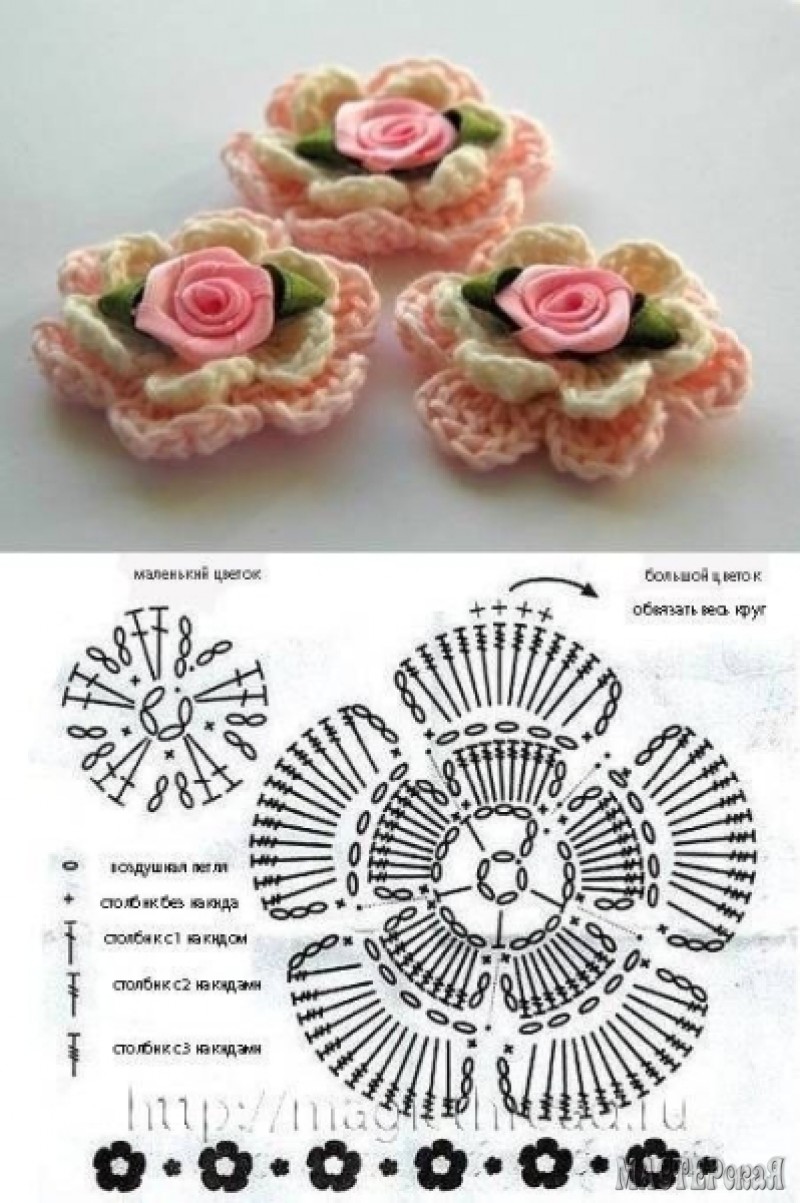Цветочная салфетка. Очень эффектная! Она с объёмными цветами, связана крючком из хлопковой пряжи. Процесс вязания состоит из трех частей: сначала нужно связать три круглые салфетки белой пряжей, затем связать цветы меланжевой пряжей и, наконец, соединить всё между собой. Соединение возможно и в процессе вязания. Кому как удобнее.