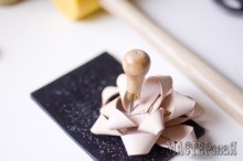 пробейте в центре дырку, затем еще две-три дырки, чтобы можно было сшить цветок нитками