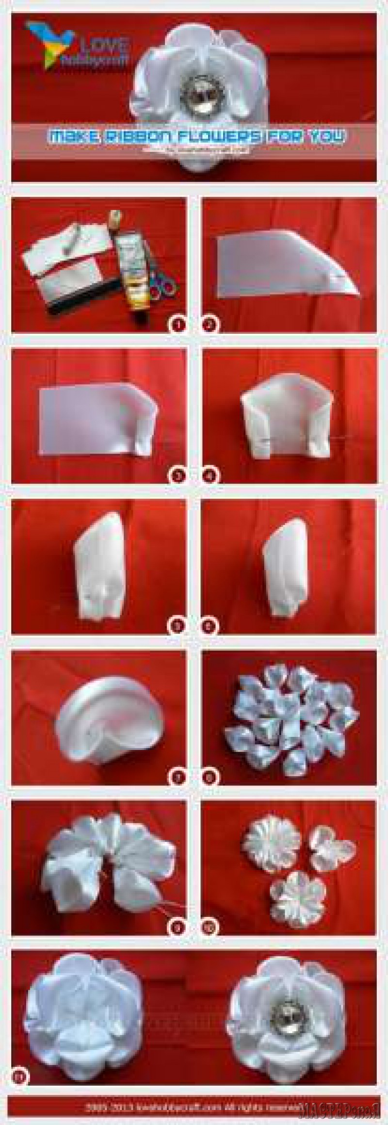 Очень красивые цветы можно сделать из ткани или обычных лент. Используя некоторые инструменты (иглу, нить, ножницы, клеевой пистолет, спички) можно смастерить красивые розы или полевые цветы.Следуя этим пошаговым инструкциям, вы сможете своими руками сделать неповторимые искусственные цветы, которыми можно украсить как интерьер так и подарки, открытки, одежду и даже прическу.