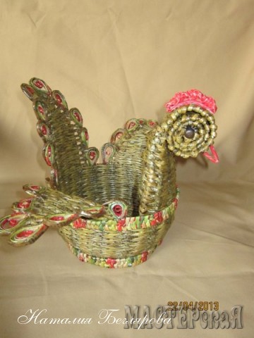 Дайте пудры и духов для приманки петухов! пн, 22/04/2013 - 17:55 Изменить отображение работыПосмотреть в виде фото Посмотреть в виде слайдов Всем здравствуйте! Успела до отъезда на дачу сплести курочку. Жирненькая получилась! Спасибо Ильфату вдохновителю! Трубочки из старого телефонного справочника. Красила их морилкой. Витульки делала из рекламок. Пара фотографий с моим хулиганом Опубликовано на masterskaja.net.Копирование с указанием источника приветствуется. Голосование за работу Не понравилось0 Понравилось0 Очень понравилось0 Отлично4 Отправить в Мой Мир Добавить в закладки Яндекс Добавить в закладки Вконтакте Класс! Рассказать в ЖЖ Добавить на Facebook Tweet This! Отправить в Мой Мир Рассказать в LiveInternet Добавить в Google Bookmarks Добавить на MicroBloggy Похожие материалы Всех женщин Страны... Мой МК изготовления... Корзинка для фруктов Плетеная вазочка Моя первая корзинка пн, 22/04/2013 - 19:22 #1 тамиха Ой какая прелееееееесть! Я такой курочки не видела ни у кого пн, 22/04/2013 - 19:40 (Ответ на #1) #2 Наталия Беглярова Спасибо! Мне очень приятно! пн, 22/04/2013 - 20:47 #3 Ксения 68 Да это не курочка, это павлин!!!Здоровский! пн, 22/04/2013 - 21:18 (Ответ на #3) #4 Наталия Беглярова Спасибо! Она сказала, что она курочка, И жених сыскался ей королевич Петусей. пн, 22/04/2013 - 21:55 (Ответ на #4) #5 Ксения 68 Ну конечно курочка, просто она очень красивая вт, 23/04/2013 - 09:47 #6 Мария Федотова Роскошная курочка! вт, 23/04/2013 - 12:42 (Ответ на #6) #7 Наталия Беглярова Спасибо! ср, 24/04/2013 - 11:32 #8 Gorodko Такая курочка должна нести только золотые яички! Просто королевишна! ср, 24/04/2013 - 12:32 (Ответ на #8) #9 Наталия Беглярова Спасибо! Буду ждать золотых яичек! ср, 24/04/2013 - 12:57 (Ответ на #9) #10 Ксения 68 Их нужно самой покрасить к Пасхе в золотой цвет. Вот здорово будет !!! ср, 24/04/2013 - 18:27 (Ответ на #10) #11 Наталия Беглярова К сожалению такой краски у меня нет. сб, 08/06/2013 - 22:58 #12 Ve-Руся Самая красивая курочка из всех !!!!!! чт, 20/06/2013 - 23:48 (Ответ на #12) #13 Наталия Беглярова Спасибо! Это очень приятно!