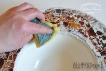 Смываем излишки мокрой губкой