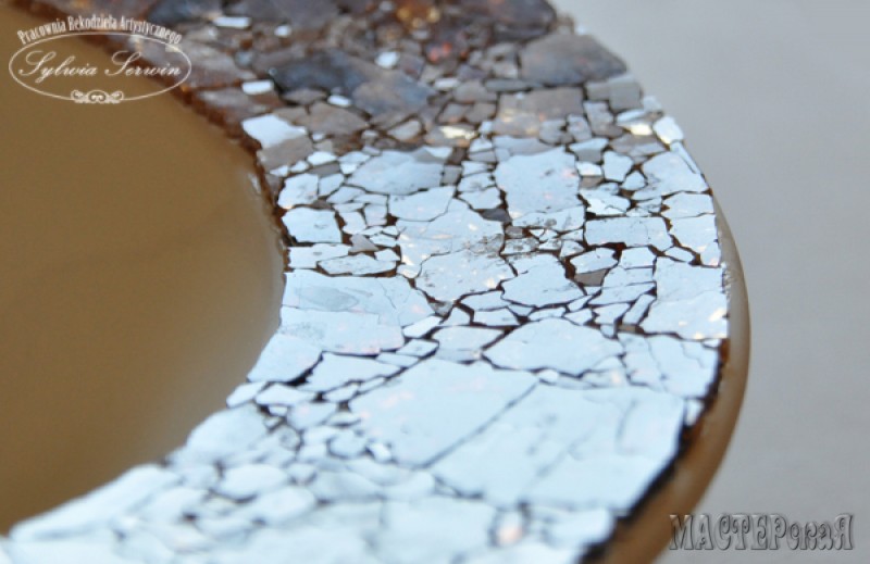 Для работы нам понадобится тарелка с ровными краями и обязательно пинцет. Им нужно подхватывать осколочки, макать их в клей и как можно ближе приклеивать друг к другу