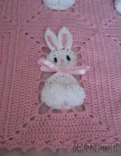 Вы только посмотрите на эту красоту! Такой плед с зайчиками можно связать розовым для девочки и голубым - для мальчика.