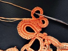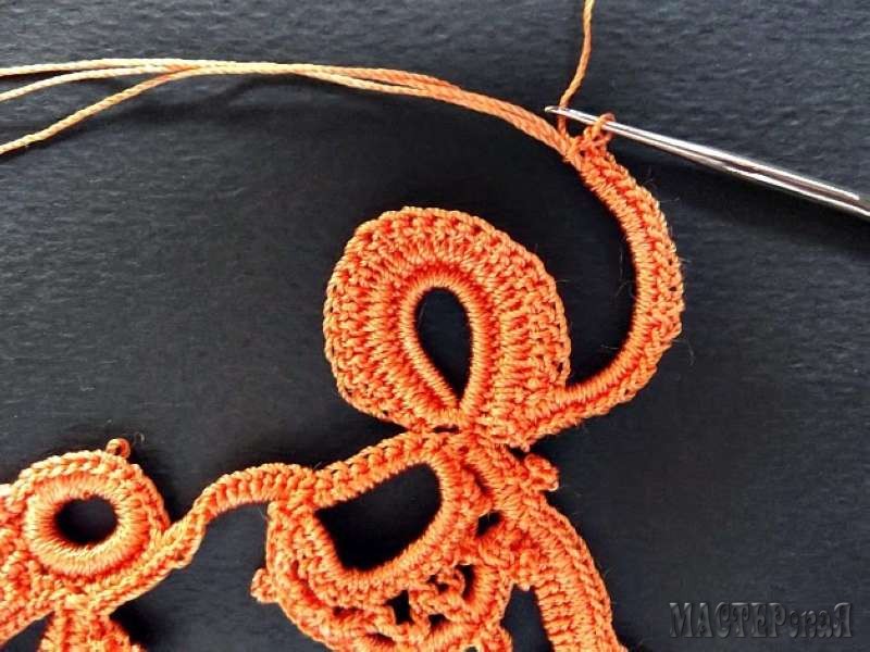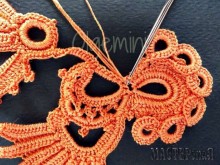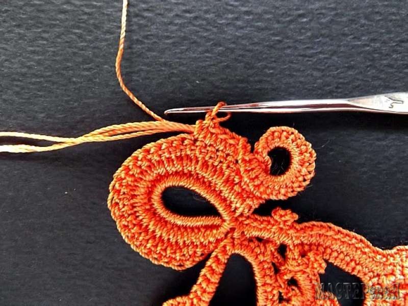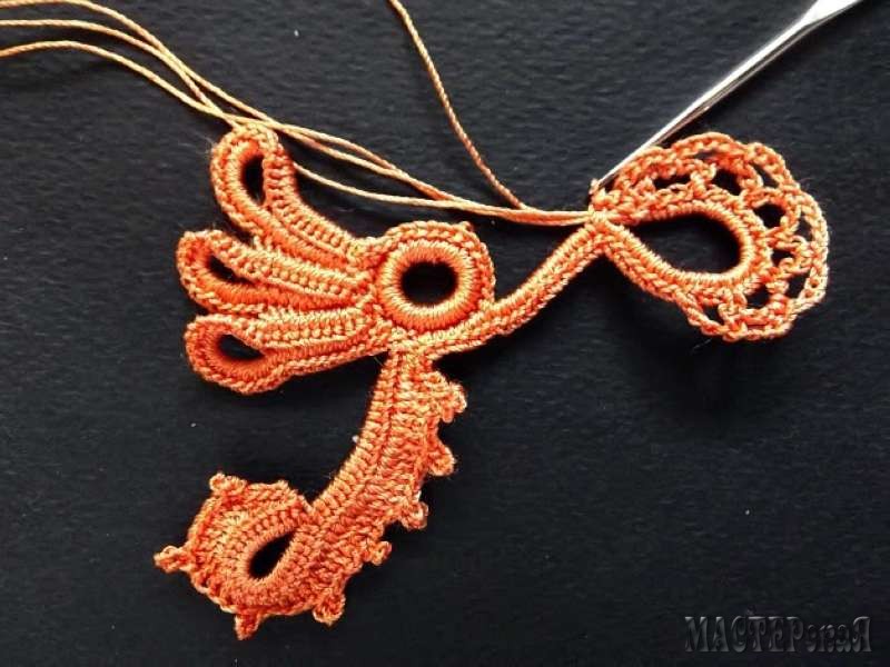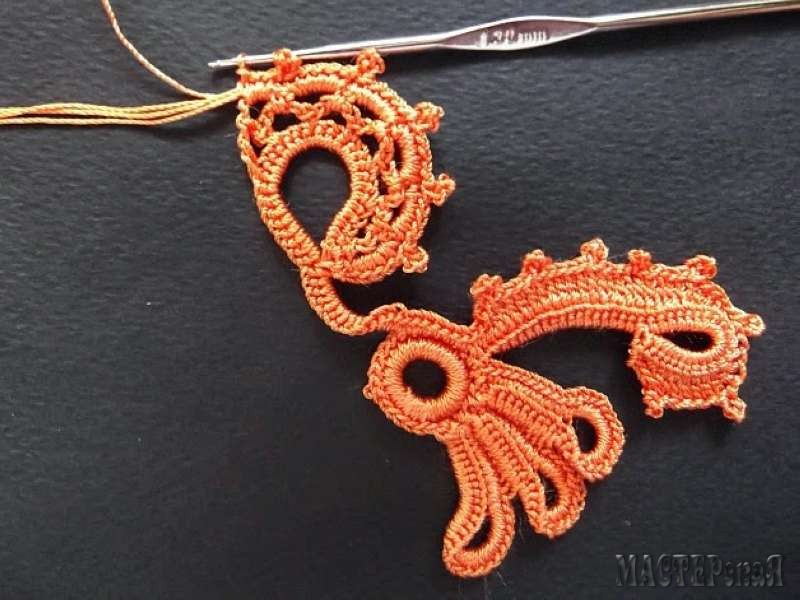 Этот элемент выполнен по фото старинного ирландского кружева. Мотив выполняется с применением бурдона (Напоминаем, бурдон- это 2-5 нитей, соединённых вместе, которые являются основой).