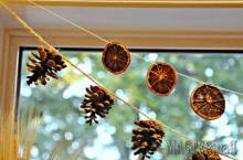 Для изготовления таких гирлянд лучше использовать апельсины. Лимоны при сушке темнеют и имеют совсем не респектабельный вид. Апельсины хорошо просушите на противне на самом маленьком огне и при открытой духовке.