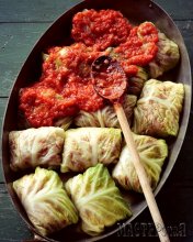 Голубцы, фаршированные говядиной, свининой и рисом, в остром томатном соусе