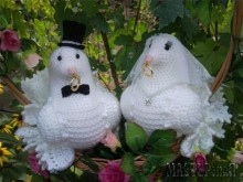 Голуби крючком. Голубь символизирует дух жизни, душу, переход от одного состояния к другому, дух света, непорочность , невинность, нежность и покой. Голубя посвящают Великим Матерям и Царицам Небесным. Голуби издавна считаются символом мира и любви, влюбленных часто называют «голубками». Нередко можно увидеть, как молодожены на ступеньках Дворца бракосочетания подбрасывают вверх в небо белых голубей, загадывают желание и наблюдают, как они поднимаются к облакам. Ну а если негде взять живых голубей? Что делать? Конечно вязать!!!