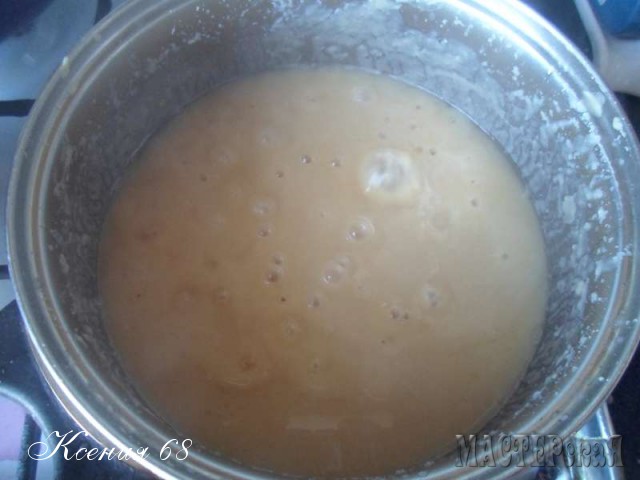 Ребрышки вынимаем из бульона, даем им остыть и отделяем мясо от костей. Затем засыпаем его обратно в бульон, дабавляем гороховое пюре и продалжаем варить на медленном огне.