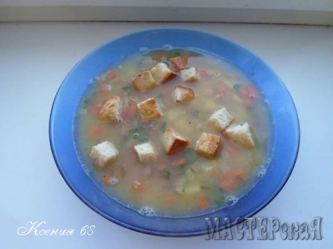 Кстати, сухарики лучше не засыпать все сразу в тарелку, а подсыпать их в процессе еды. Тогда они будут постоянно хрустящими.
