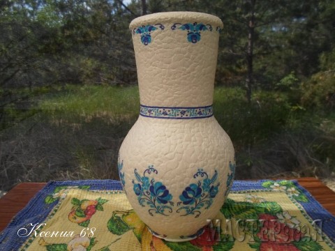 Действительно, от души ты поработала, душевно так получилось!!!!! Вообще под "гжель" почти. Салфетку вырезала или вырвала кусочки? Мне очень понравился новый горшочек.