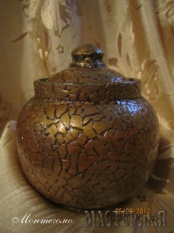 Оленька, да ладно (где тут смущающийся смайлик?...), обычный горшок с плохо прокрашенной основой и неровно покрашенной скорлупой... Хотя на первый взгляд, да на маленьких фотках - выглядит ниче так )))))))))))))