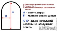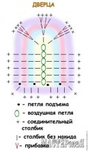 1) Дверь вяжем по схеме полуовала. Количество рядов на схеме условно — вяжите столько рядов, сколько необходимо для желаемого размера двери.