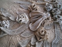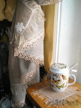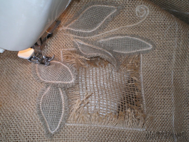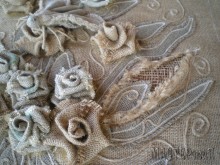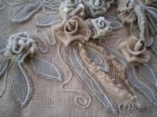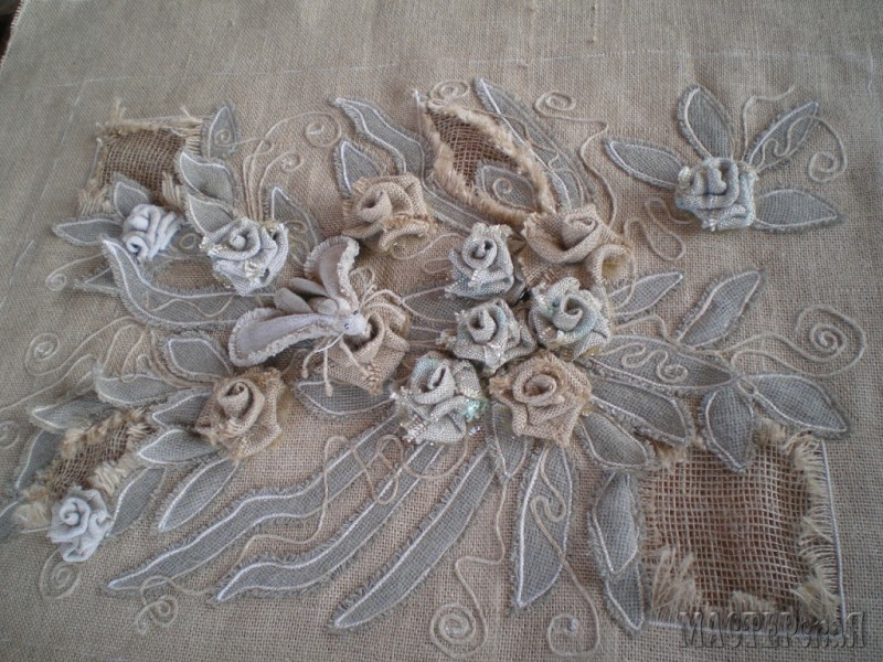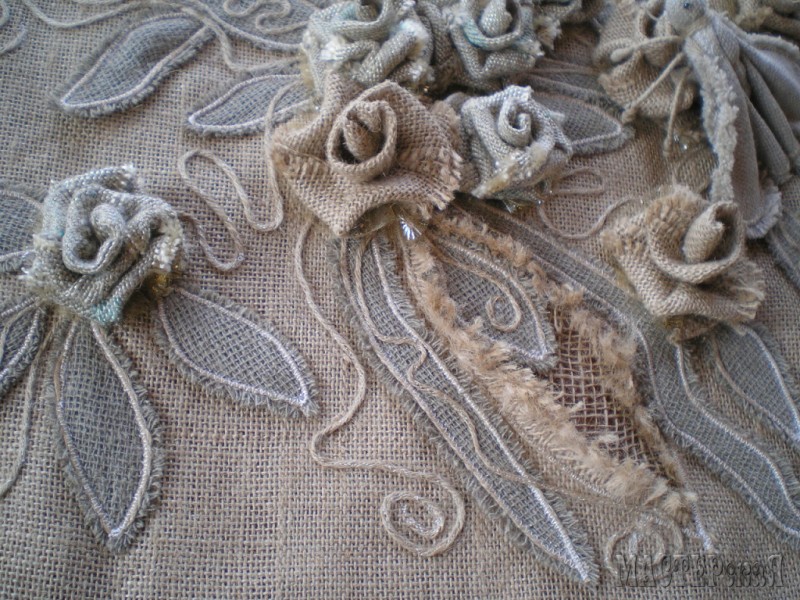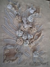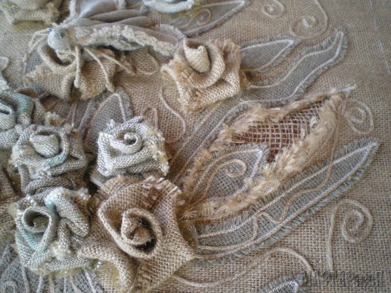 Вы только посмотрите какое потрясающее панно можно сделать из мешковины с розами и..... молью. А еще - шторы, салфетки, птички и крышечки на банки. Браво мастеру Наталье Московских!
