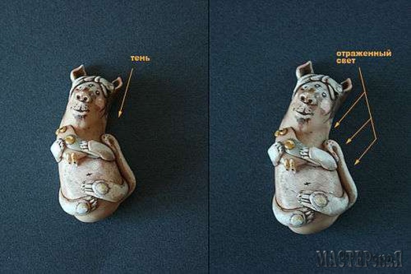 В принципе на этом можно было бы остановиться, но есть еще одна интересная вещь – отражатель. Если свет падает слева, то на правом боку образуются тени. И чем ярче свет, тем темнее тень. Поэтому справа я ставлю либо лист белой бумаги, либо фольги который и будет отражателем. Свет дойдет до него и под углом вернется обратно, попутно высветлив тень.