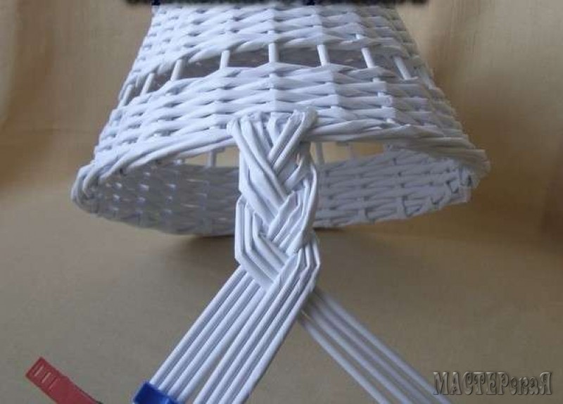 Итак, корзинка готова, теперь возьмемся за ручку. Для этого продеваем трубочки к верху корзинку следующим образом