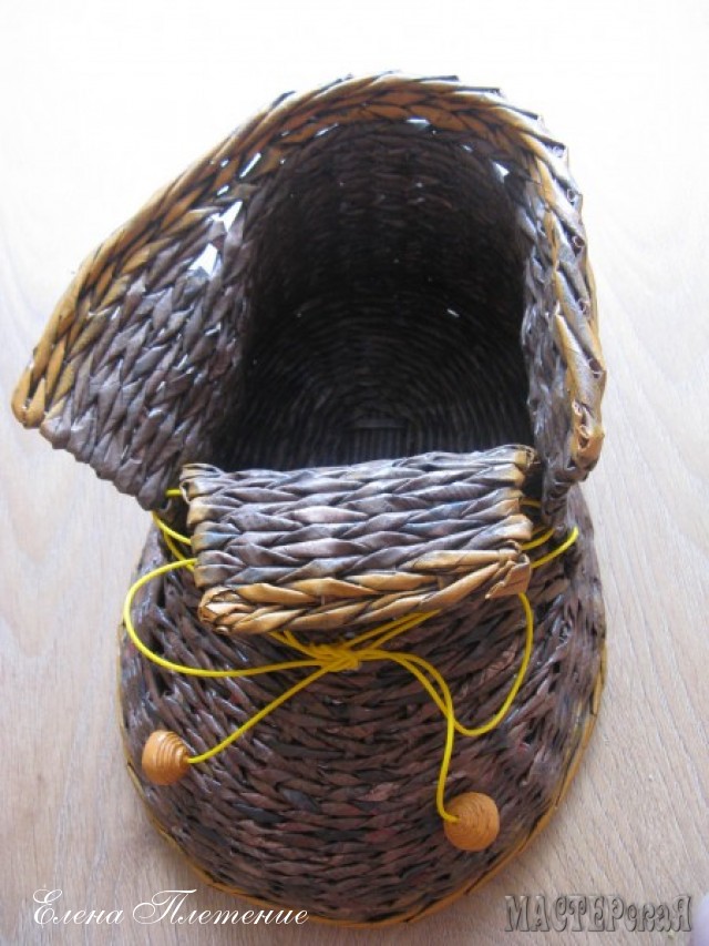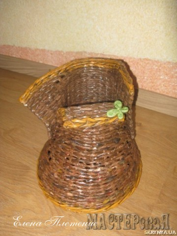 Плетённое эко-кашпо из газетных трубочек станет прекрасным домом для комнатных цветов и подойдёт в качестве вазы для сухоцветов. Изделие покрыто акриловым лаком, устойчиво к механическим нагрузкам, можно протирать влажной салфеткой.