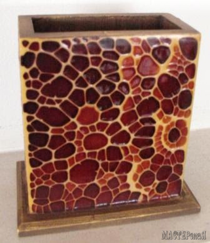 Теперь переходим к главному украшению - ложной мозаике. На пенопласт наносим ровным слоем клей ПВА