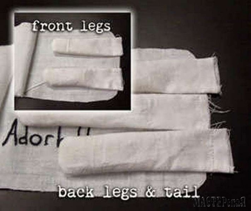 Сшиваем их на машинке. Сшиваем туловище вместе с лапками и хвостиком