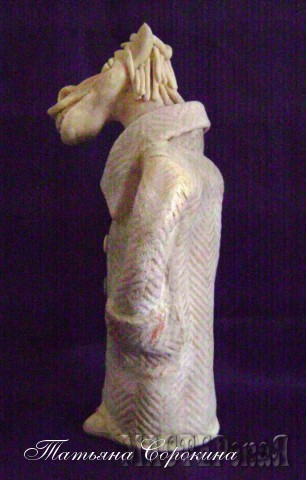 Сделала его, как всегда, почти из мусора...бутылка, туалетная бумага, проволока, холодный фарфор, гипс и кусочек кримплена в елочку...
