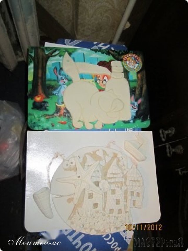 Ну и сначала - только слеплен. Даже не слеплен, а вырезан и украшен. Первый раз делала работу в таком стиле - вырезание и украшение, лепки тут практически нет. Только нос, ушко и полоски на бутылке на горлышке.