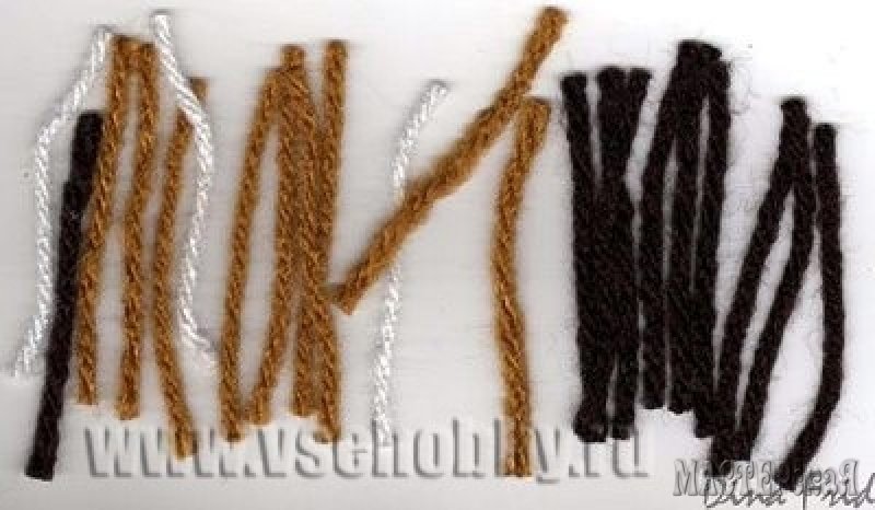Нитки для изготовления ковра ручной работы предварительно подготавливаются. Нужно их нарезать на отрезки равной длины. Проще всего сделать это так: намотать пряжу на картонку шириной 7-8 см, потом снять и разрезть сверху и снизу (можно только сверху или