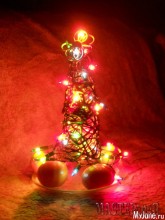После того, как ёлка остынет, приступаем к декорированию. Хотя особых трудов это не составит. В пустотелую часть ёлочки помещаем гирлянду и вытаскиваем некоторые лампочки наружу, они будут напоминать иголки.