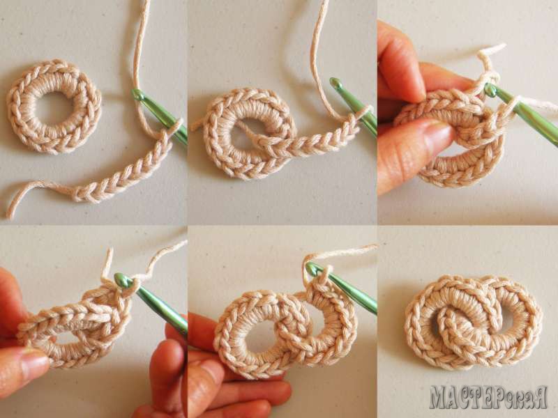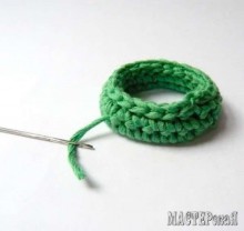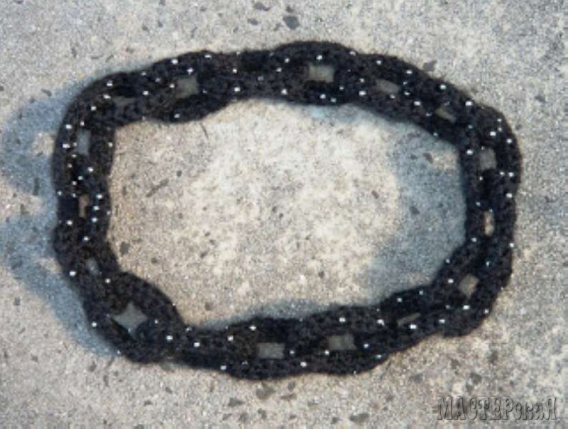 Крупная цепь крючком. Вязаное ожерелье вы легко сможете создать, имея под рукой крючок и совсем немного пряжи, оставшейся от недавно связанной крупной вещи. Ожерелье в виде крупной цепи можно связать несколькими вариантами.Прилагаемые пошаговые мастер-классы помогут вам легко справиться с работой. Изделия выполнены обычными столбиками без накида поэтому с работой справится даже начинающая вязальщица