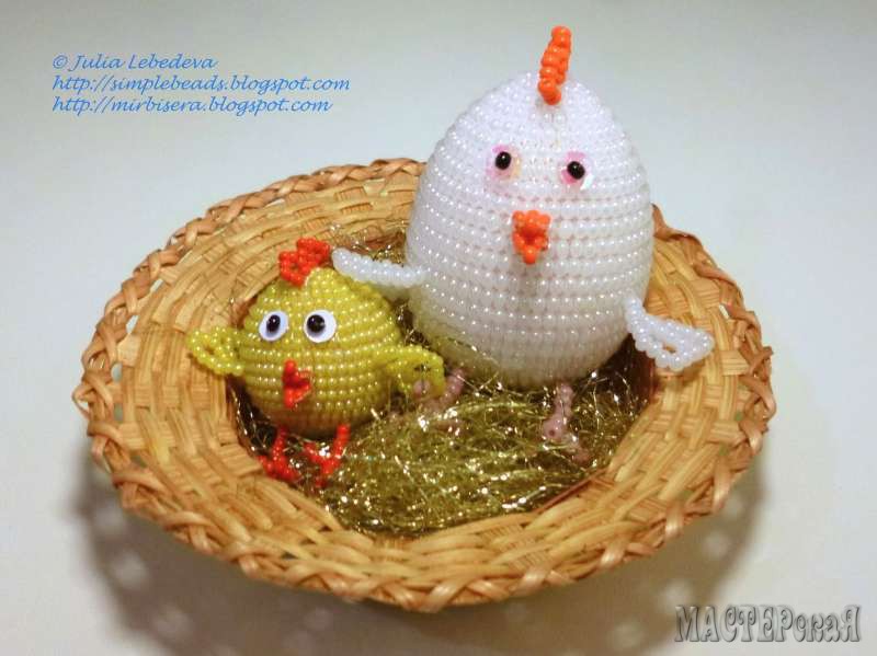 Курочка и цыпленок из бисера вс, 22/03/2015 - 09:43 Оригинальные поделки из бисера — курочка и цыпленок. Сделайте эти сувенирчики на Пасху. Фото мастер класс прилагается Для работы понадобится: деревянное яйцо - основа для курочки небольшой шарик или бусина - основа для цыпленка бисер четырех цветов: белый, желтый, красный или оранжевый, черный. леска или нить для бисера игла для бисера Автор мастер класса - Юлия Лебедева Отправить в Мой Мир Добавить в закладки Яндекс Добавить в закладки Вконтакте Класс! Рассказать в ЖЖ Добавить на Facebook Tweet This! Отправить в Мой Мир Рассказать в LiveInternet Добавить в Google Bookmarks Добавить на MicroBloggy Похожие материалы Свадебный... Пауки (плетение из... Новогодняя ёлочка в... Имитация вышивки в... Кулон из проволоки...