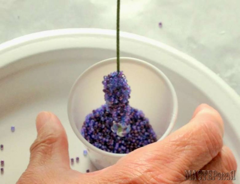 Руками формуем лавандовый цветок. Убираем лишние бусинки
