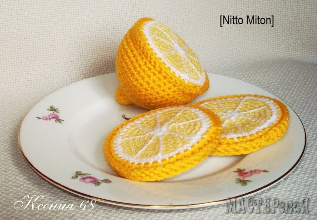 После этого соединяем «лимон» и «дольку лимона» белыми нитками с помощью столбиков без накида.