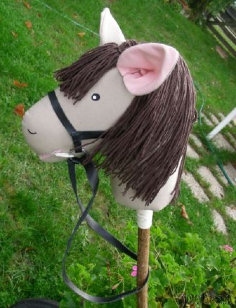 Не хотите сшить своему малышу забавную игрушку - лошадку на палочке? Тем более, что мы будем встречать Новый год - год Лошади. Мордочка шьется из носков. Лошадки могут быть любых размеров. Для маленькой лошадки нужно взять маленький носочек и деревянную палочку для шашлыков. А для большого скакуна - большой носок и большую палку, например, от швабры