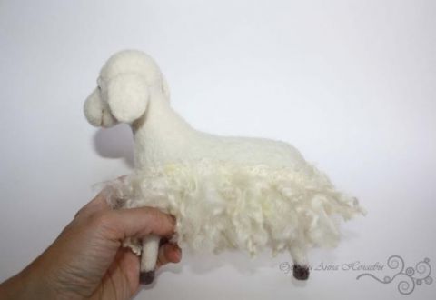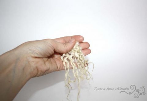 После стирки кудри высохли и их можно привалять к нашей овечке. Кудри выглядят как длинные, конусообразные пряди.