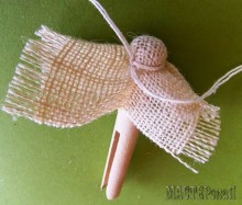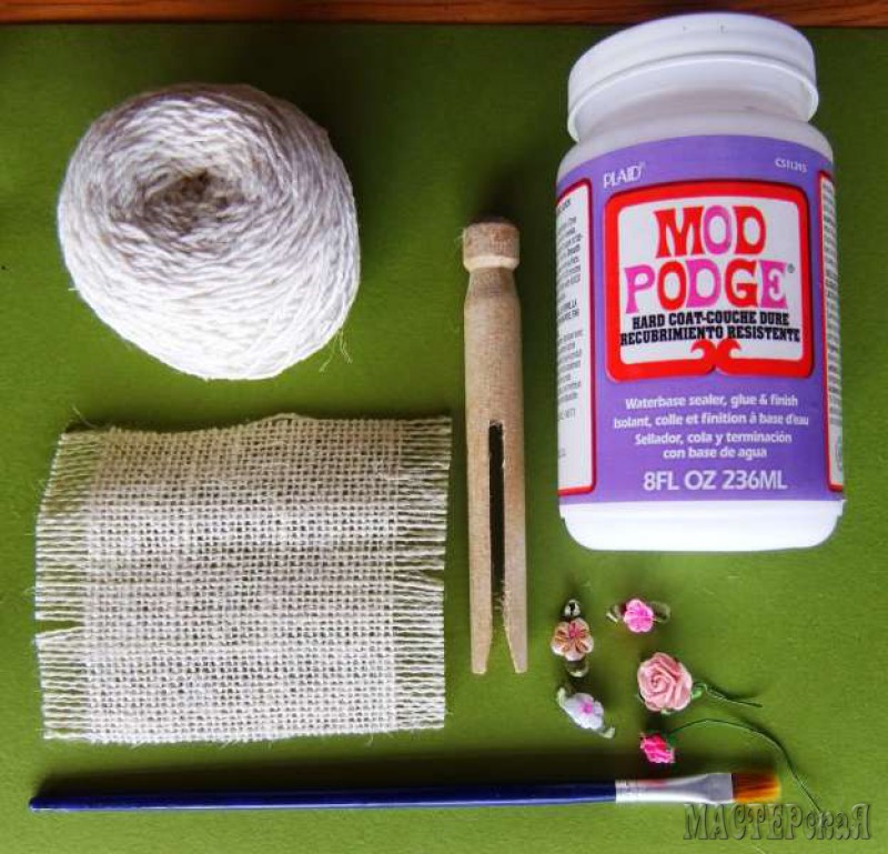 Кусочек мешковины накладываем на закругленную основу и фиксируем веревкой