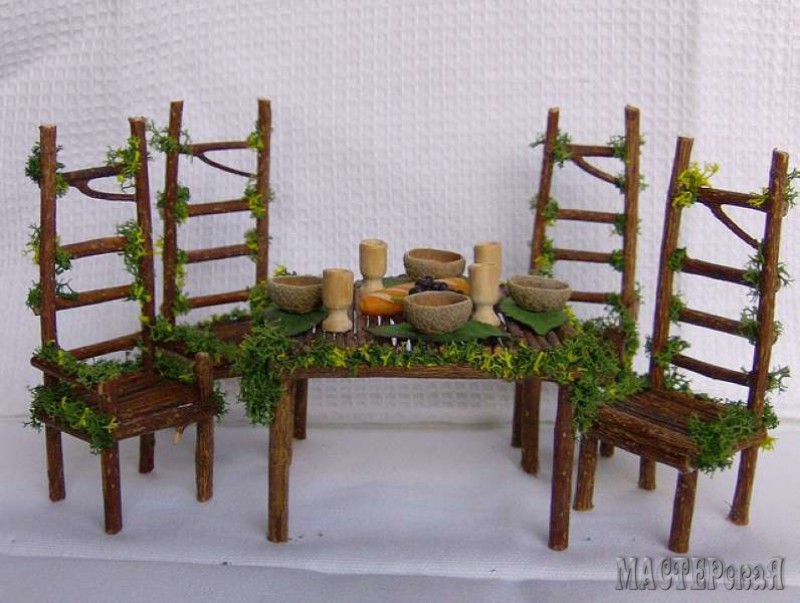 А я хочу показать вам просто удивительную миниатюрную мебель, которая обязательно пригодится вам при создании мини садов. Мебель в нашей жизни - не просто один из основных видов оборудования помещений, садов, парков и улиц. Мебель - это отношение к себе и окружающему миру. Это стиль, эпоха, философия, здоровье и комфорт. Думаю, что нет необходимости разъяснять роль мебели и в мини садах. Из чего её только не мастерят! В ход идет всё: скорлупа грецких орехов, перья птиц, кора и небольшие спилы деревьев, мох, веточки, бусины, желуди, камушки, скелетированные листики.....смотрите и вдохновляйтесь.