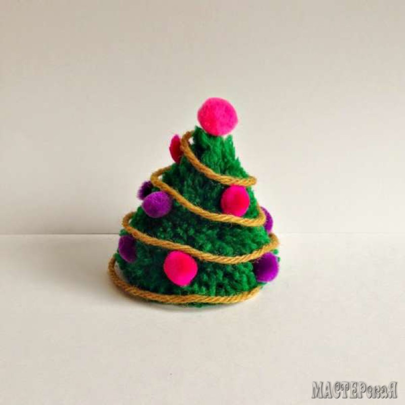 Возвращаясь к теме новогодних поделок нельзя не вспомнить о миниатюрных елочках из помпонов, которыми принято украшать рабочий стол или упаковку с подарком. Такой маленький сувенирчик может привнести новогодний дух даже в самую суровую обстановку рабочего кабинета. Ёлочка из помпонов займет минимум времени и средств, а радовать будет не один день.