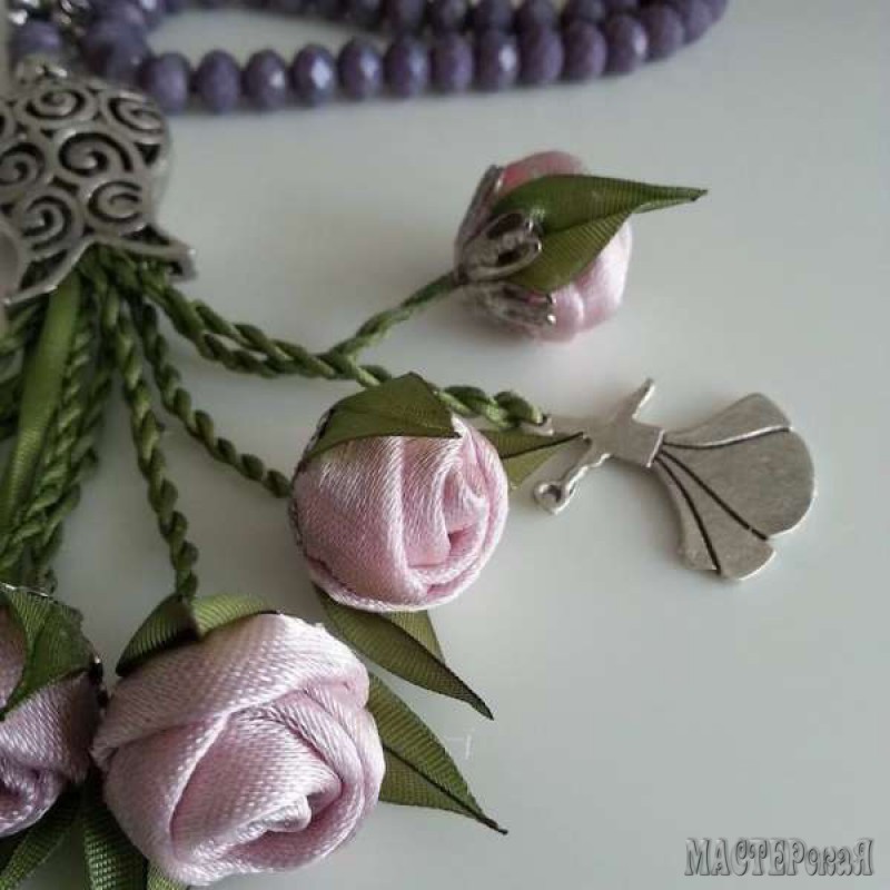 Эти миниатюрные розочки из текстильных лент используют для украшения восточных четок. Но они настолько милы, что им найдется достойное применение и для украшения одежды, кошельков, сумочек, заколок и др. Из них можно сделать даже бижутерию, например, серьги или браслет.
