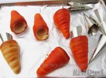 Красим тесто оранжевым пищевым красителем. Выпекаем тесто 15 минут при 180-200 градусах.