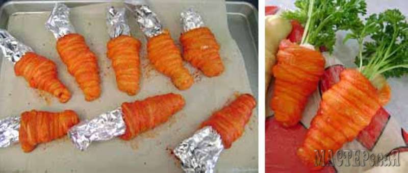 Вот здесь видна разница между покрашенными красителем морковками и смазанными желтком. Выбирайте какие вам ближе к душе