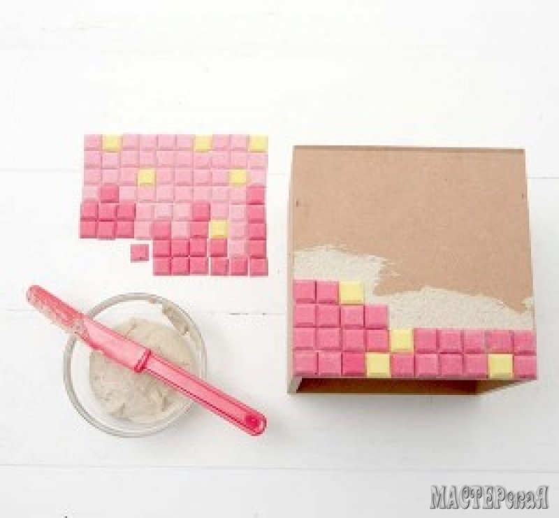 Хотите сделать мозаику для рукодельных творений самостоятельно - в желаемой цветовой гамме и в необходимом для вас количестве? Запасайтесь резиновым ковриком с ячейками, гипсом, красками, столярным клеем и будем творить!