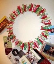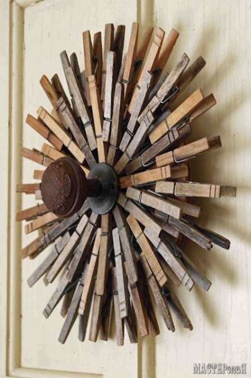Никогда бы не подумала, что из обыкновенных деревянных прищепок можно сделать такие яркие и красивые новогодние венки. За основу можно взять проволоку, кружки ДСП или обыкновенный круг из плотного картона. А можно вообще использовать деревянные пяльца